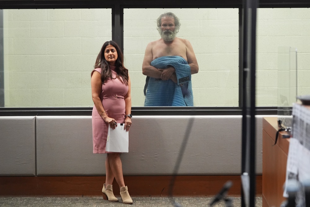 Jimmy Wayne Carwyle estava sem camisa e envolto em um cobertor azul; juiz responsável pelo caso solicitou uma avaliação da saúde mental, interrompendo os trâmites legais até que um laudo médico seja apresentado